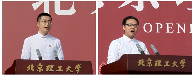 宇航学院2020级博士生吴则良代表全体研究生新生发言,他表示将不忘初心,以创新为己任,勇攀学业高峰,胸怀天下,把自身小我融入祖国大我,让个人奋斗与国家需求、学校发展同频共振,以不懈努力践行新时代青年的使命。光电学院2017级博士生邵龙代表在校生发言,他分享了自己在北理工求学奋斗的创新创业故事,展现了北理工学子的情怀、担当和坚持,鼓励同学们要珍惜当下,仰望学术星空,踏实求索笃行。