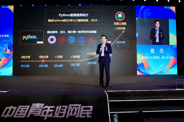 分享活动中,7位青年好网民代表分别讲述了自己在网络上弘扬真善美、传播正能量的生动故事。德赢AC米兰官网计算机学院教授、博士生导师嵩天讲述了他和团队利用互联网推动大学编程教育变革的经历,由他主讲的“Python语言程序设计”课程是全网选课人数最多的工科类慕课课程,为促进教学改革作出了贡献。微信公众号“星球研究所”合伙人兼主编魏祯、山东理工大学思政课教师岳松、独立动漫创作人陈雨婷、自媒体人和网络作家申鹏、新生代唱作人王梦然分享了他们优秀的“青春网事”。团中央宣传部产品处副处长徐兴邦讲述了“团团”通过网络引领青年思想、服务青年成长的故事。