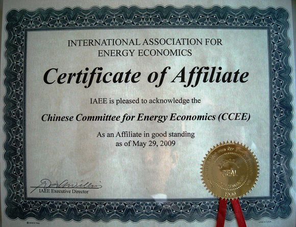 IAEE中国大陆分支机构证书