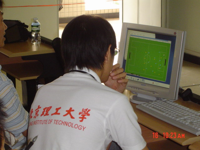 在整个参赛的日子里,我们的队员经常是昼夜奋战,异常辛苦。白天要一边参赛一边派人拍摄“重点”对手录像;夜里要集体开会研究不同战法,还要争分夺秒地修改程序代码。努力做到周密筹划、精心布置、全力备战。在比赛中,场上是惊心动魄的激烈角逐,场外同样需要斗智斗勇。领队和队员们一同在场边侦察敌情,设计战术,分析排位,决策战法,俨然一场真刀真枪、有胆有识的较量。我们有许多场比赛是在极其不利的情况下反败为胜的。正是由于我校队员那种拼
