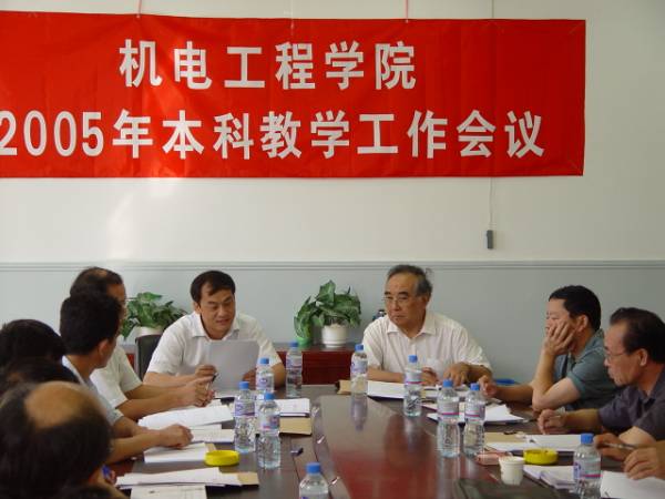 机电工程学院2005年本科教学工作会议于2005年9月3日(星期六)上午8:30-12:10在3号教学楼一层学院会议室召开。参加会议的有:一级学科、二级学科带头人、学院学位分委员会委员、学院教学指导委员会委员、本科专业建设责任教授、院务会成员等二十多人。马宝华教授也应邀参加了会议。学校主管本科教学工作的副校长孙逢春教授、教务处处长庞思勤教授出席了会议并分别作了重要讲话。
