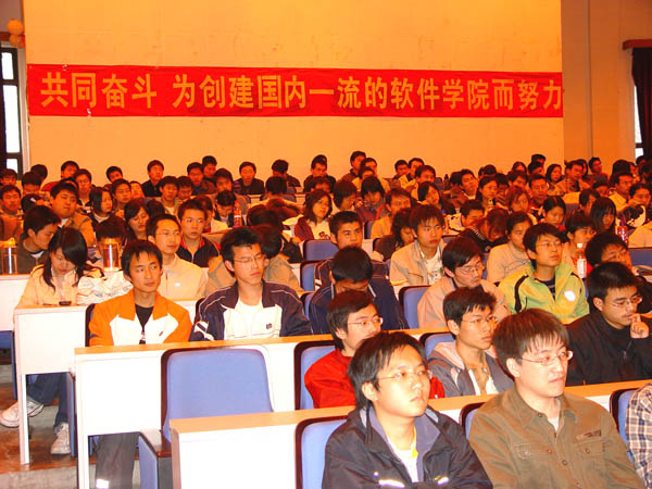 首先,付梦印院长向同学们介绍了学院目前的建设情况和近期发展设想。软件学院始终以培养“创新型、实用型、复合型、国际化”人才为目标,在进一步加强与企业合作、建设以市场需求为导向的专业方向上上作了很多工作,也取得了一定的阶段性成果。学院积极为提高学生的应用实践能力创造条件。