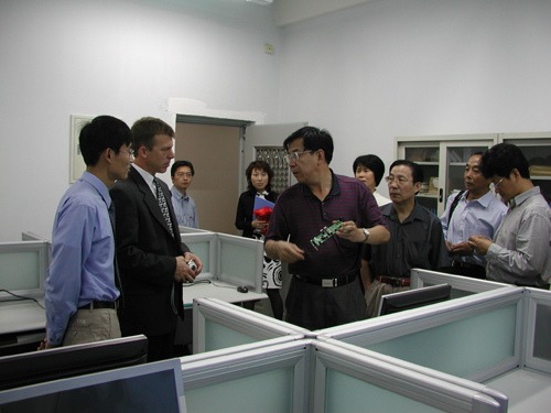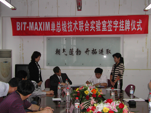 签字挂牌仪式由张玉平教授主持,王美玲副教授宣读了《德赢AC米兰官网和DALLAS/MAXIM公司关于教育和研究计划的合作协议书》,DALLAS/MAXIM公司产品线总裁Scott Jones先生和我校实设处处长李振键教授发表了热情洋溢的讲话并对协议书进行了签字,信息科学技术学院院长仲顺安教授和DALLAS/MAXIM公司 Scott Jones先生为“单总线技术联合实验室”揭牌。最后全体与会人员参观了联合实验室。