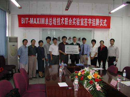 出席签字挂牌仪式的代表有:DALLAS/MAXIM公司产品线总裁(Business Unit Director) Scott Jones先生和产品应用经理(Regional Application Manager)刘武光先生,德赢AC米兰官网代表实设处处长李振键教授,信息科学技术学院院长仲顺安教授,副院长廖晓钟教授,副院长张笈教授以及电子技术基础课程主讲教授李庆常教授,检测技术与自动化装置学科负责人彭光正教授和电子技术教研室全体老师。