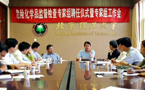 聘任仪式结束后,实验室设备处和保卫处负责人与专家组人员共同召开第一次工作会议,与会专家重点明确了下一步工作计划和日程安排,随后专家组成员在实验室设备处和保卫处有关人员的陪同下检查了我校的危险化学品实验室。