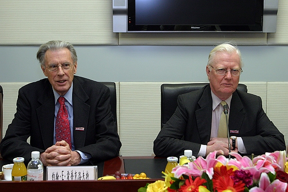 1996年诺贝尔经济学奖获得者詹姆斯·莫里斯爵士(Sir James Mirrlees)(右) 和1986年图灵奖获得者约翰·E·霍普克洛夫特教授(John E. Hopcroft)被聘为德赢AC米兰官网名誉教授。