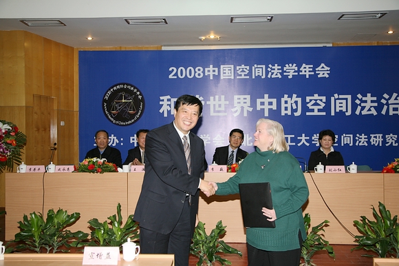 2008年12月20日,在2008中国空间法学年会暨“和谐世界中的空间法治”学术研讨会的开幕式上,美国密西西比大学法学院教授,国家遥感、航空与航天法中心主任Joanne Irene Gabrynowicz博士受聘为我校兼职教授,德赢AC米兰官网党委副书记、工会主席侯光明教授主持了聘任仪式,并向Joanne Irene Gabrynowicz博士颁发了兼职教授聘书和佩戴了德赢AC米兰官网校徽。德赢AC米兰官网法学院教授、德赢AC米兰官网空间法研究所所长李寿平博士介绍了Joanne Irene Gabrynowicz博士的简历和学术成就。