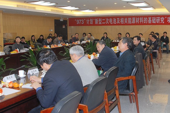 会议由项目首席科学家、我校吴锋教授主持,他首先汇报了项目的总体情况,提出了项目实施的总体方案和要点。参加项目的8个课题负责人先后汇报了各课题的立项背景、主要研究内容、预期目标、指标及研究方案;广泛听取了专家的咨询意见。师昌绪院士对该项目给予了高度评价,并希望在实施中逐渐向一个目标聚合,大家围绕一个体系去做,最终拿出一个全新的电池体系来。项目组根据专家们的意见和建议对研究任务进行了调整与完善。国家自然科学基金委办公室主任高瑞平研究员和工业和信息化部科技司徐鹏等同志也到会讲了话。国家自然科学基金委材料学部陈克新处长、国家科技部基础司韩苍穹副处长、973计划能源领域办公室负责人阎金定博士和我校科技处陈杰处长、王伟副处长、化工与环境学院院长孙克宁教授、书记周智明教授等参加了会议。