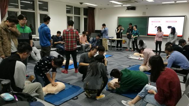 “快来人啊,这里有人倒地了!” 一声召唤,课堂上同学们迅速展开急救,在判断环境安全,做好自我防护后,将患者仰...