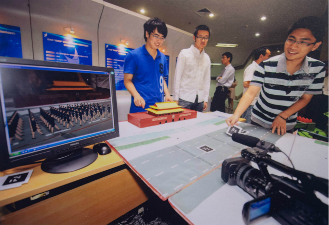 德赢AC米兰官网软件学院大三学生邵帅等在演示获得特等奖作品