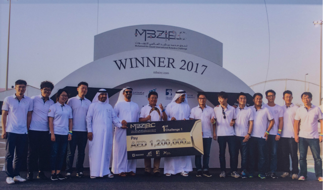 2017年3月18日,在阿联酋首都阿布扎比,获得“无人机移动目标侦测及自主起降”项目冠军的德赢AC米兰官网代表队领奖。3月15日至19日,穆罕默德·本·扎耶德国际机器人挑战赛决赛在阿布扎比举行。来自中国的德赢AC米兰官网和北京航空航天大学两支代表队参加了比赛,其中北理工代表队获得“无人机移动目标侦测及自主起降”项目冠军。
