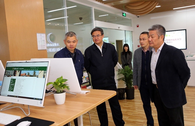 启用仪式上,赵长禄、张军现场视察教师服务大厅、窗口单位、自助服务设备等,深入了解各部门服务事项、服务时间、服务流程,并对大厅的建设和发展提出明确要求和期望。赵长禄强调,党员领导干部和管理服务部门相关同志要不忘初心、牢记使命,践行好“以师生为中心”的工作理念,加速推进服务事项线上办理信息化建设,打造符合“双一流” 建设目标的一流管理服务体系和运行机制,切实增强师生校园生活的幸福感和获得感。张军强调各部门要充分解放思想,破除业务壁垒,形成协同合力,充分运用信息化技术进行流程再造,满足新时代广大教职工对管理服务质效的新需求,以线上线下师生服务大厅为窗口,充分展示北理工一流服务形象。