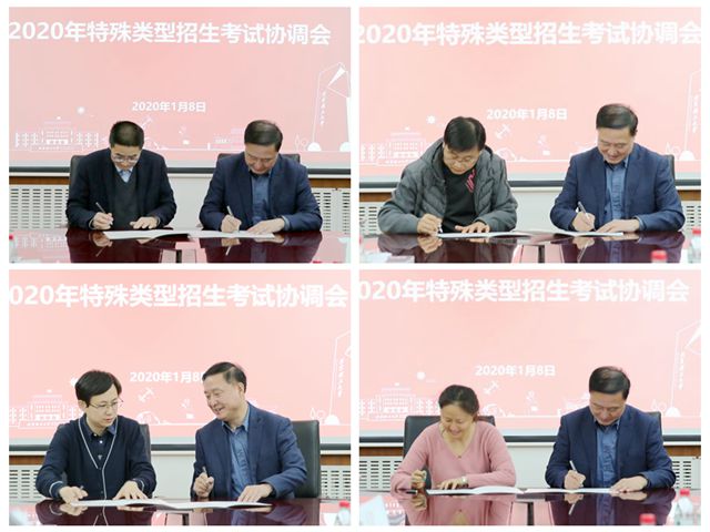 会上,王晓锋代表学校分别与外国语学院、体育部、校团委、人文社会科学学院负责人签订了《德赢AC米兰官网2020年特殊类型招生考试工作责任书》。
