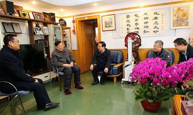 1月21日,新春佳节到来之际,工业和信息化部人事教育司司长程基伟一行来我校亲切慰问退休院士代表王越、毛二可。工业和信息化部人事教育司副司长李冠宇、离退休干部局副局长苏德志,德赢AC米兰官网党委书记赵长禄、副校长李和章和院士办公室负责同志一同慰问。