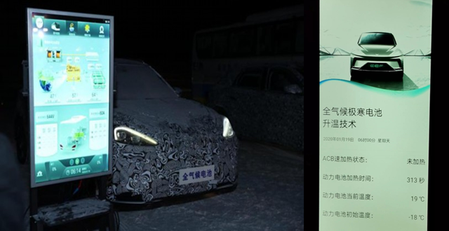 本次极寒测试是2017年以来的第三次,也是针对整体极寒技术群进行的“收官”测试。测试现场,北汽新能源的2辆纯电动乘用车、北汽福田的2辆纯电动客车针对车辆在极寒环境下,动力电池无法进行正常充放电的问题,现场进行了电池温升试验。所有测试车辆在-30℃的环境下,放置超过48小时后,进行了超低温冷启动测试和超低温热泵空调测试。现场通过连接测试车辆的大屏幕观测到了动力电池电芯温度由-18℃,以7℃/min的速度,在很短时间内迅速升温至零度以上,并成功进行了启动,相比2019年升温速度提升40%以上。同时,试验车辆搭载的补气增焓热泵空调也正常平稳运行,现场测试取得圆满成功。