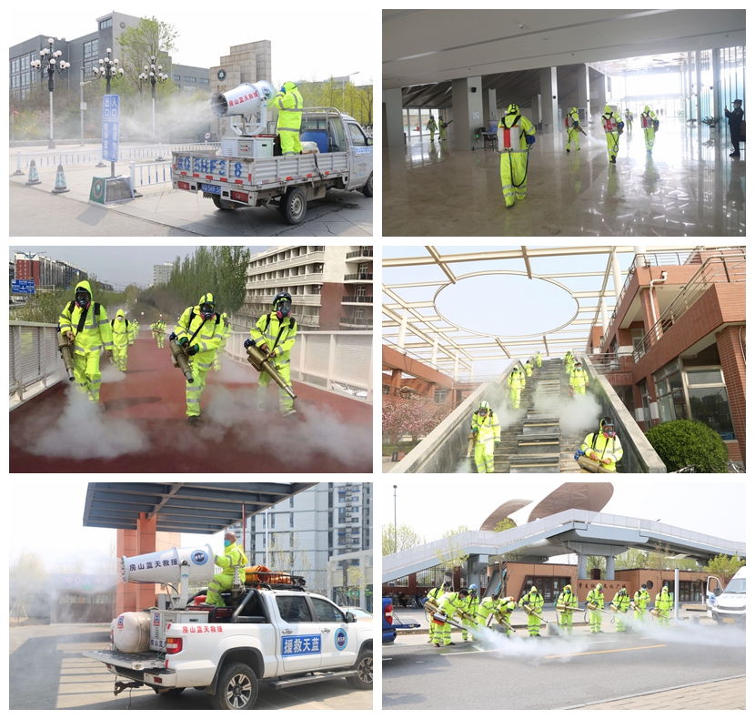 蓝天救援队是在民政部独立注册的纯公益救援机构,是以服务社会为理念发展起来的人道志愿组织,免费提供生命救援、人道救助、灾害预防、应急反应能力提升、灾后秩序恢复和减灾等各个领域的救援行动。队员由各行各业的爱心人士组成,他们中有医生、公务员、教师、退役军人等。此次消毒工作为属地政府为房山地区大中小学提供的义务消毒服务,为维护师生安全提供了重要保障,彰显了志愿者的责任与担当。