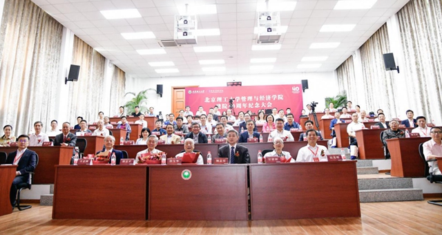 纪念大会前学院举办了校友代表座谈会。会上,王兆华感谢校友们长期以来对学院的关心和支持并向校友们介绍了学院近年来发展建设情况,参会校友介绍了个人发展情况并表示继续支持学院发展。校友北汽集团有限公司副总经理陈江向学院赠送刻有“明理修得、桃李芬芳”的牌匾,祝贺管理与经济学院建院40周年,对学院培养了众多优秀学子表示感谢!
