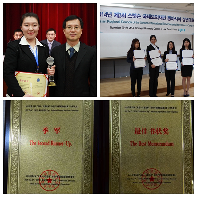 当然,模拟法庭只是法学院实践教育理念的一个集中体现,学院不仅与多家司法部门、律师事务所和企业法务建立了数十个实践基地,设计“法律诊所”和“法援中心”等教学实践环节,学生们也在实践中提升了业务水平和个人能力,在国内外各项活动中取得了优异成绩,在中国空间法学会“国际空间模拟法庭大赛”中连续三年全国冠军和最佳辩手,在第十七、十八届Manfred Lachs国际空间法模拟法庭亚太地区比赛中,我校选手两次打破中国队参赛记录,其中2008年获得了亚太地区季军的好成绩,2011、2012年在北京市高校模拟法庭大赛过程中,连续两年摘得桂冠。在2007年和2008年“全国北外杯知识产权模拟法庭大赛”中获得两项第三名佳绩。